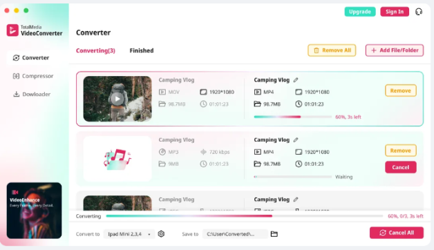 The practical solution is consistent: convert to MP4 with H.264 for anything that needs to work everywhere. It plays on both platforms, imports into every major editor, and uploads to every major platform without friction. TotalMedia VideoConverter makes this conversion straightforward whether you’re dealing with a single file or an entire archive.